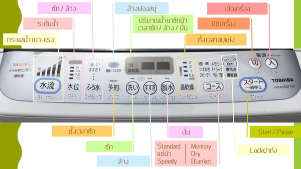 มาดูกันว่าภาษาญี่ปุ่นภาษาญี่ปุ่นแต่ละปุ่มบนเครื่องซักผ้าหมายถึงอะไรบ้าง?