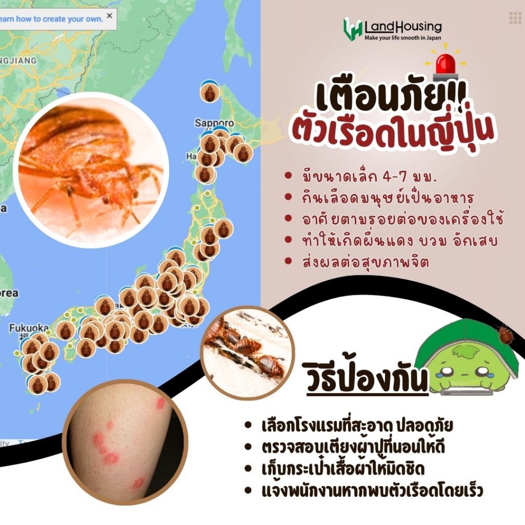 ตอนนี้มีการพบว่าตัวเรือดนั้นระบาดอยู่ทั่วประเทศญี่ปุ่นถึง 35 จังหวัดและโรงแรมหลายแห่งดังนี้
