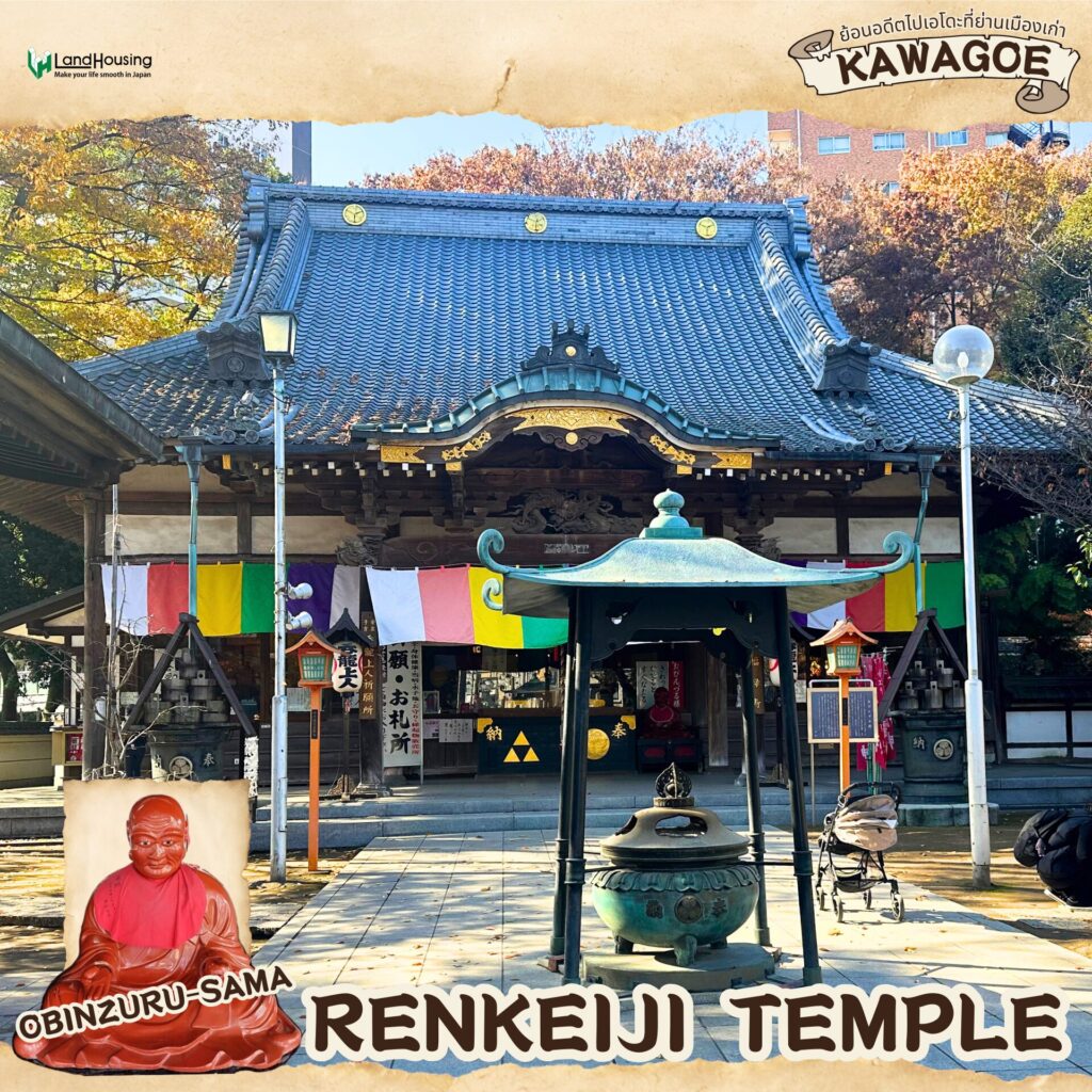 ฝั่งตรงข้ามของศาลเจ้าคุมาโนะ คือ “วัด Renkeiji” ที่เชื่อกันว่าเป็นที่ประดิษฐานของเทพเจ้าแห่งความโชคดี “ฟุคุโระคุจู” (Fukurokuju) และเทพเจ้าที่มีชื่อเสียงด้านพุทธรูปรักษาโรค “โอบินซุรุซามะ” (Obinzuru-sama) ซึ่งค่อนข้างเป็นที่นิยมในหมู่ผู้สูงอายุด้วยความเชื่อที่ว่า หากเจ็บป่วยจุดใดของร่างกายให้ลูบพระพุทธรูปบริเวณจุดเดียวกัน อาการจะดีขึ้น