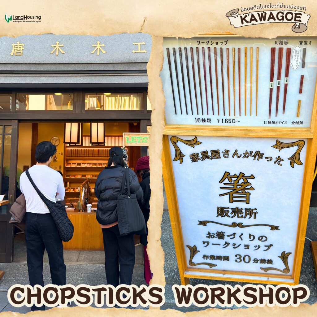 นอกจากเช่ากิโมโนถ่ายรูปสวย ๆ ไหว้พระขอพร และชิมขนมที่ทำจากมันม่วงแล้ว ที่คาวาโกเอะก็มีเวิร์คชอปทำตะเกียบด้วยนะ ใช้เวลาเพียง 30 นาทีก็จะได้ตะเกียบคู่เดียวในโลกของเราเองแล้ว เหมาะกับการเป็นกิจกรรมทำกับเพื่อน ครอบครัว หรือคนรักสุด ๆ!
