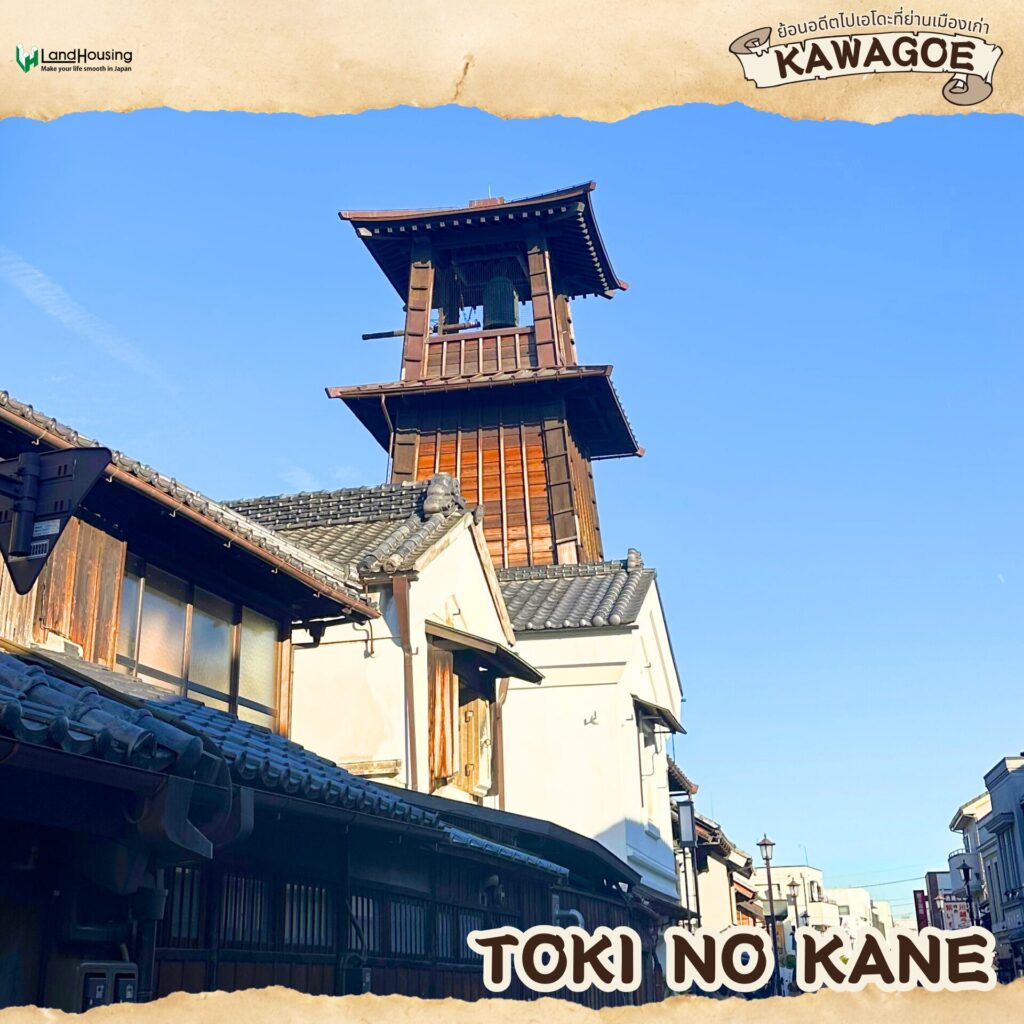 เดินต่อมาก็จะเจอกับอีกหนึ่งแลนด์มาร์คของคาวาโกเอะ “หอระฆังโบราณ” (Toki no Kane) ที่ใช้บอกเวลามากว่า 350 ปี และตอนนี้ก็ยังใช้งานอยู่ โดยระฆังจะตี 4 ครั้งต่อวัน เวลา 06.00, 12.00, 15.00 และ 18.00 น.