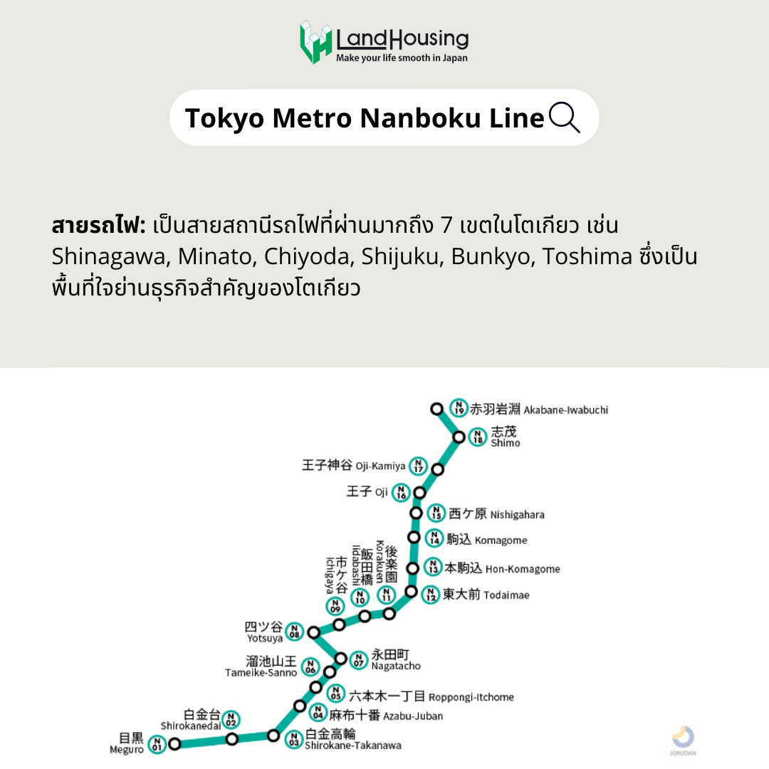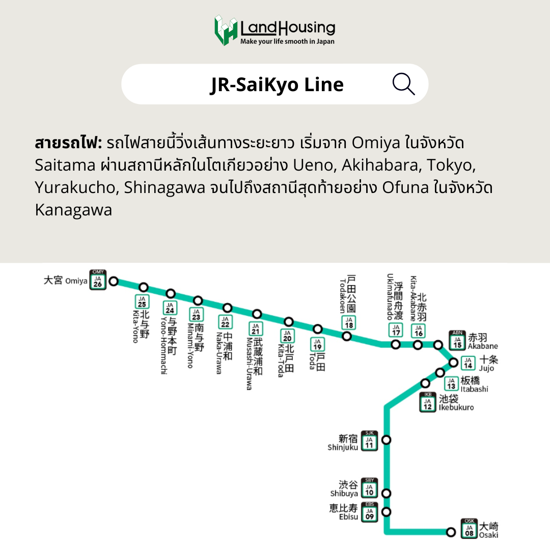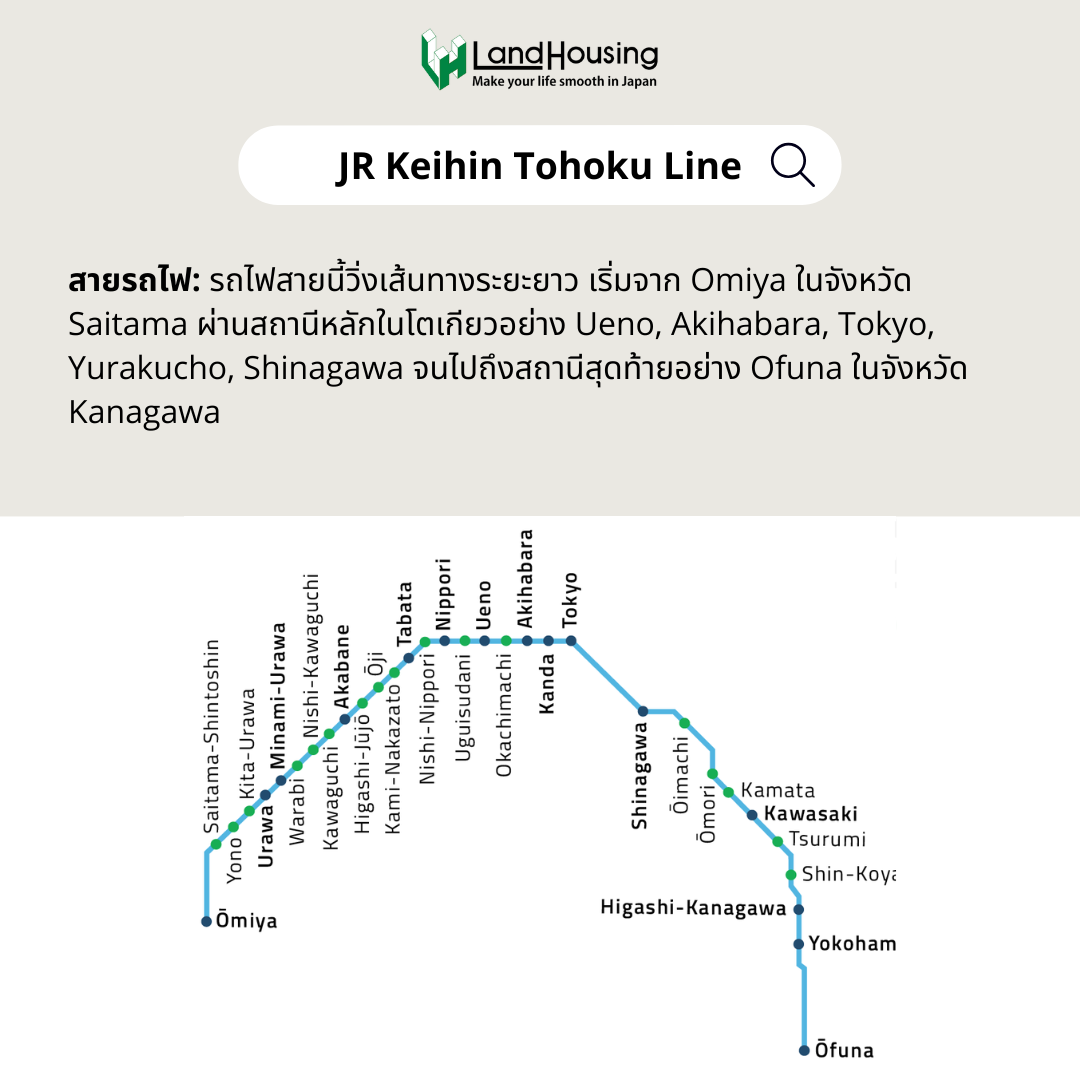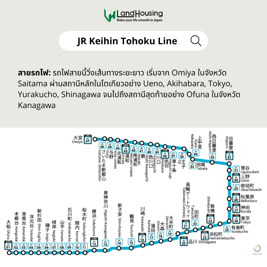 เป็นสายสถานีรถไฟที่ผ่านมากถึง 7 เขตในโตเกียว เช่น Shinagawa, Minato, Chiyoda, Shijuku, Bunkyo, Toshima ซึ่งเป็นพื้นที่ใจย่านธุรกิจสำคัญของโตเกียว