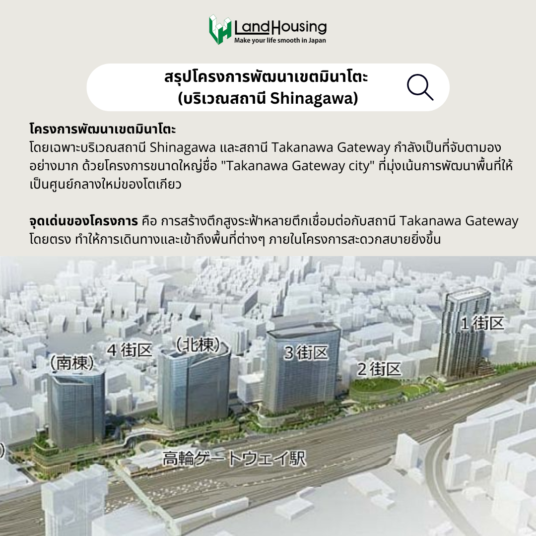 – โครงการพัฒนาขนาดใหญ่: มีการพัฒนาโครงการต่างๆ อย่างต่อเนื่อง เช่น Takanawa Gateway city ทำให้พื้นที่ได้รับการพัฒนาและมีมูลค่าเพิ่มขึ้น