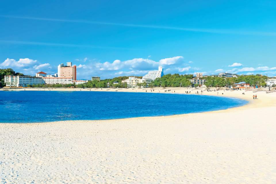 หาด Shirahama ตั้งอยู่ใน Nanki Shirahama จังหวัด Wakayama เป็นชายหาดพี่น้องของหาด Waikiki ใน Honolulu รัฐ Hawaii ชายหาดน้ำตื้นทอดยาวประมาณ 620 เมตร ในฤดูร้อน เมื่อมีนักท่องเที่ยวมาเยี่ยมชมชายหาด การได้ชมร่มกันแดดหลากสีสันประดับชายหาดก็เป็นไฮไล์ของที่นี่ ทรายชายหาดเรียบเป็นทรายควอทซ์ที่มีกรดซิลิซิก 90% น้ำทะเลมีความโปร่งใสสูง ทำให้สามารถเล่นน้ำได้อย่างสนุกสนาน