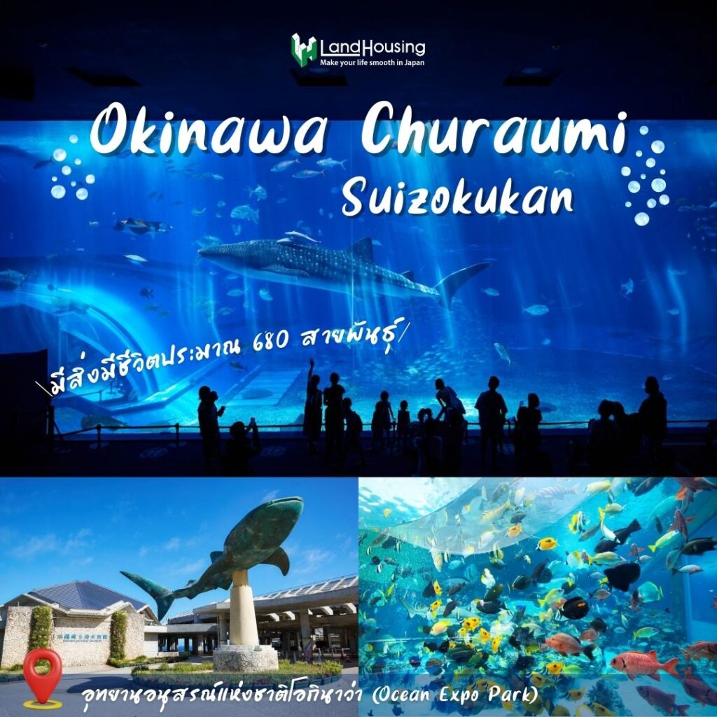 พิพิธภัณฑ์สัตว์น้ำ Okinawa Churaumi ตั้งอยู่ภายในอุทยานอนุสรณ์แห่งชาติโอกินาว่า (Ocean Expo Park) เป็นพิพิธภัณฑ์สัตว์น้ำที่มีผู้เข้าชมมากที่สุดในญี่ปุ่น โดยมีผู้คนมาเยี่ยมชมประมาณ 3 ล้านคนต่อปี ที่นี่มีสิ่งมีชีวิตประมาณ 680 สายพันธุ์ จัดแสดงในถัง 67 ตู้ มีเขตตั้งแต่น้ำตื้นที่แสงแดดส่องถึงไปจนถึงน้ำลึกที่ลึกประมาณ 700 เมตร และจัดแสดงสิ่งมีชีวิตที่สามารถพบเห็นได้เฉพาะที่นี่เท่านั้น ภายนอกพิพิธภัณฑ์สัตว์น้ำยังมีสิ่งต่าง ๆ มากมายให้ดู เช่น โรงละคร Okichan ที่คุณสามารถเพลิดเพลินกับการแสดงโลมา ตู้โชว์พะยูนอเมริกัน และตู้เต่าทะเล นี่คือพิพิธภัณฑ์สัตว์น้ำที่คุณจะเพลิดเพลินกับการการสำรวจโลกใต้ทะเลอย่างแน่นอน