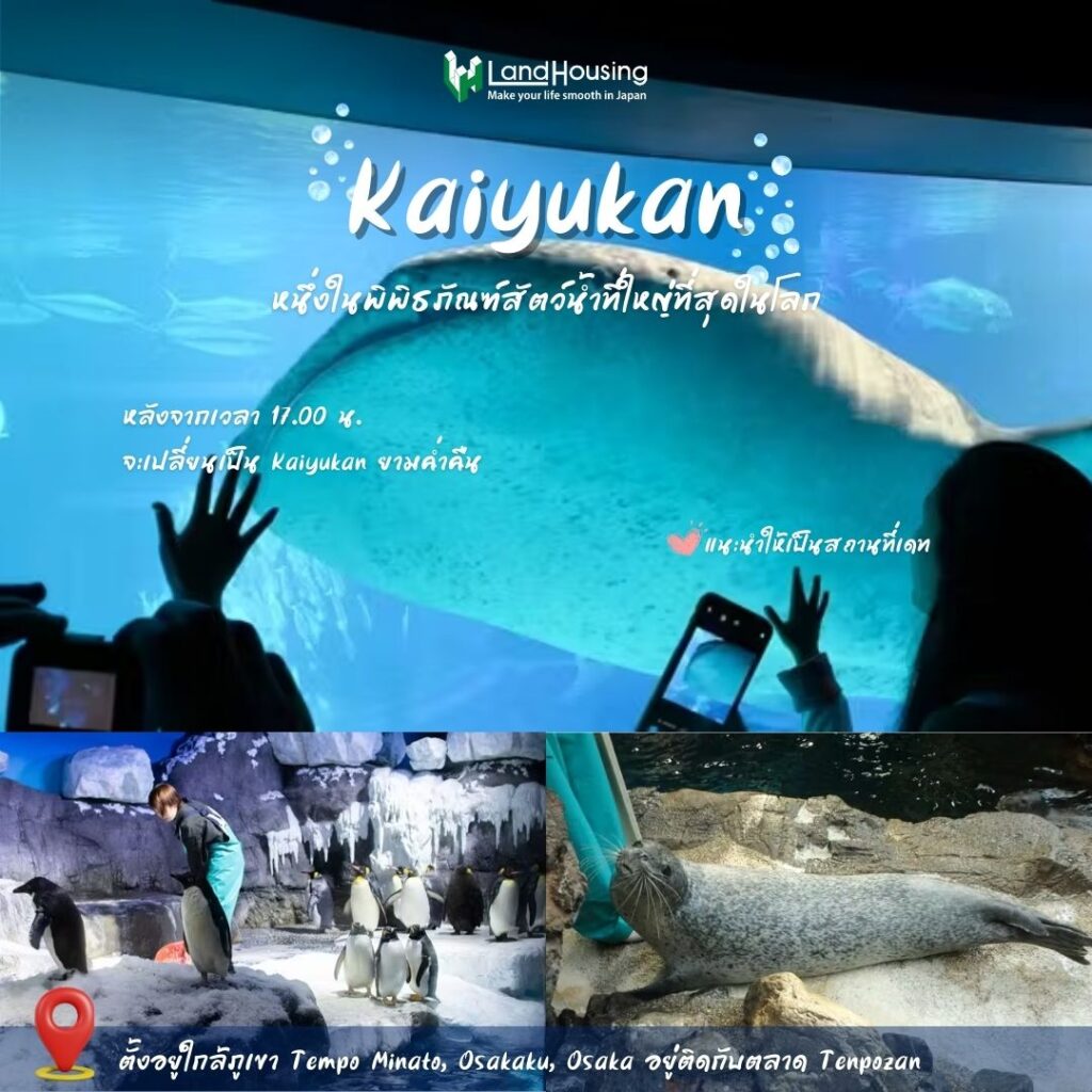 พิพิธพันฑ์สัตว์น้ำ Kaiyukan คือหนึ่งในพิพิธภัณฑ์สัตว์น้ำที่ใหญ่ที่สุดในโลก ตั้งอยู่ใกล้ภูเขา Tempo Minato, Osakaku, Osaka อยู่ติดกับตลาด Tenpozan คุณจึงสามารถเพลิดเพลินกับไม่เพียงแต่พิพิธภันฑ์เท่านั้น แต่ยังรวมถึงการช้อปปิ้ง อาหารเลิศรส และการพักผ่อนในรวมอยู่นที่เดียว แนวคิดของ Kaiyukan คือ ทุกสิ่งเชื่อมโยงกัน ซึ่งอิงจากแนวคิดที่ว่าโลก และสิ่งมีชีวิตทั้งหมดที่อาศัยอยู่บนโลกเป็นเหมือนสิ่งมีชีวิตที่มีปฏิสัมพันธ์ซึ่งกัน และกัน