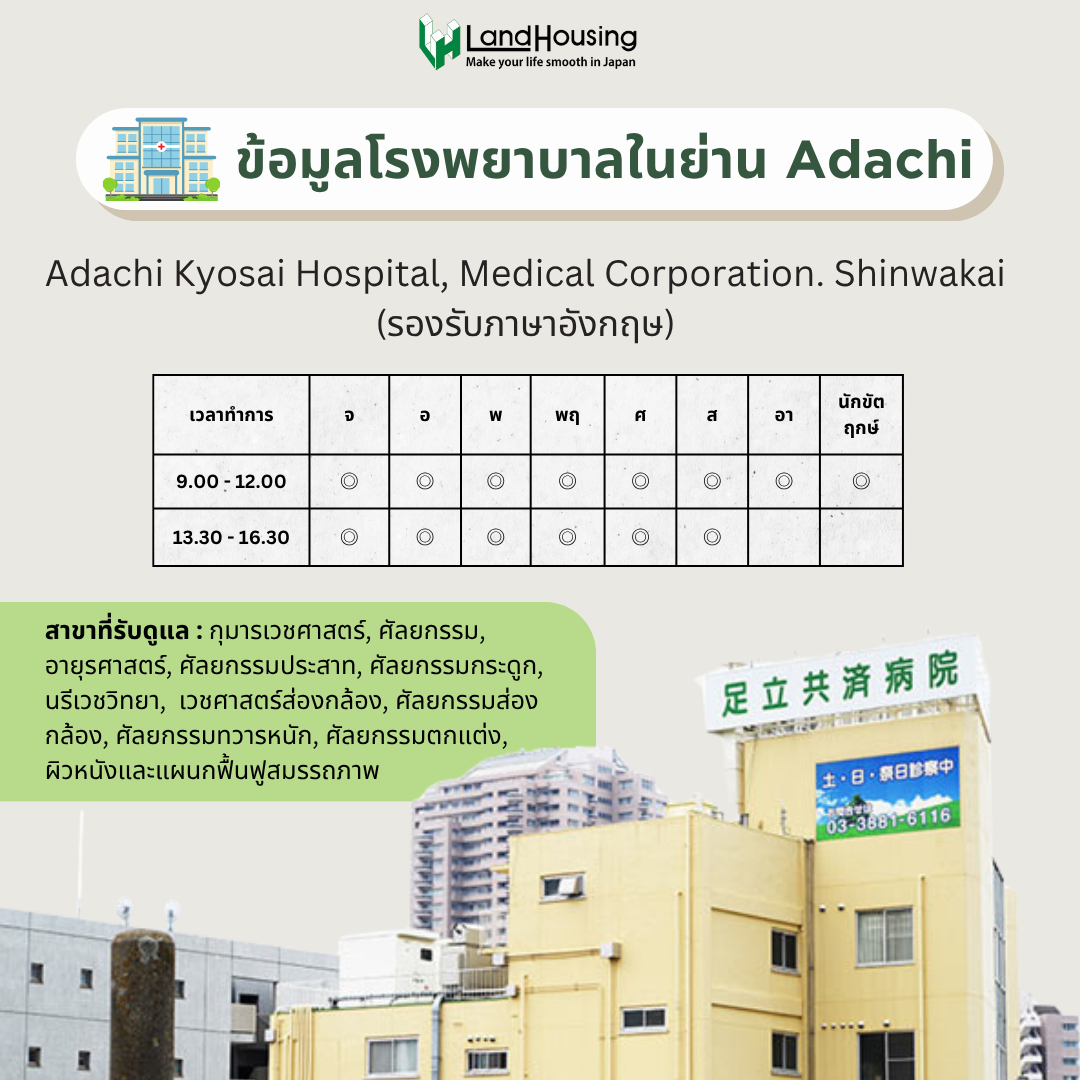 โรงพยาบาล: โรงพยาบาล Adachi Kyosai (รองรับภาษาอังกฤษ)