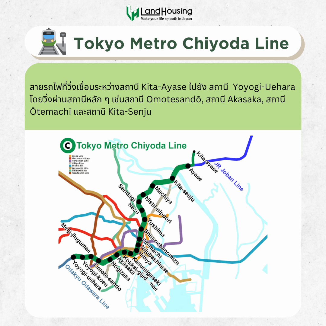 มีรถไฟ 2 สายผ่านสถานีนี้ Tokyo Metro Chiyoda Line, JR Joban Line