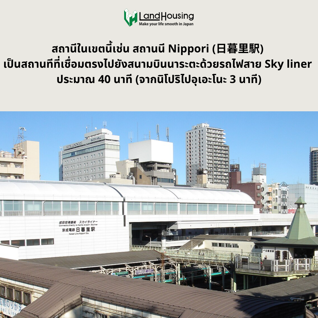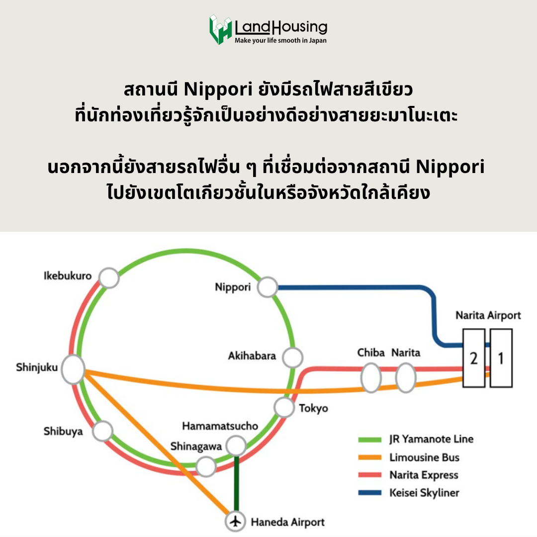 – สถานี Nippori เชื่อมต่อตรงไปยังสนามบินนาริตะด้วยรถไฟสาย Skyliner ใช้เวลาเพียง 40 นาที