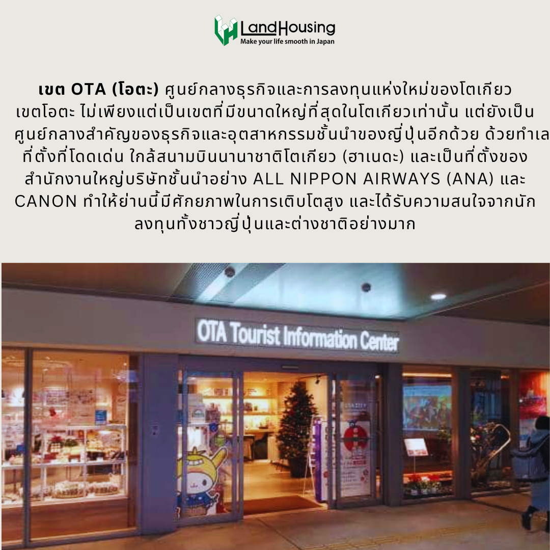 ใครจะรู้ว่าย่านโอตะ ซึ่งเคยเป็นเพียงย่านชานเมืองเล็กๆ จะกลายมาเป็นหนึ่งในย่านที่น่าจับตามองที่สุดในโตเกียว ด้วยศักยภาพในการเติบโตที่สูงและสิ่งอำนวยความสะดวกที่ครบครัน ทำให้โอตะเป็นที่สนใจของนักลงทุนทั้งชาวญี่ปุ่นและต่างชาติ