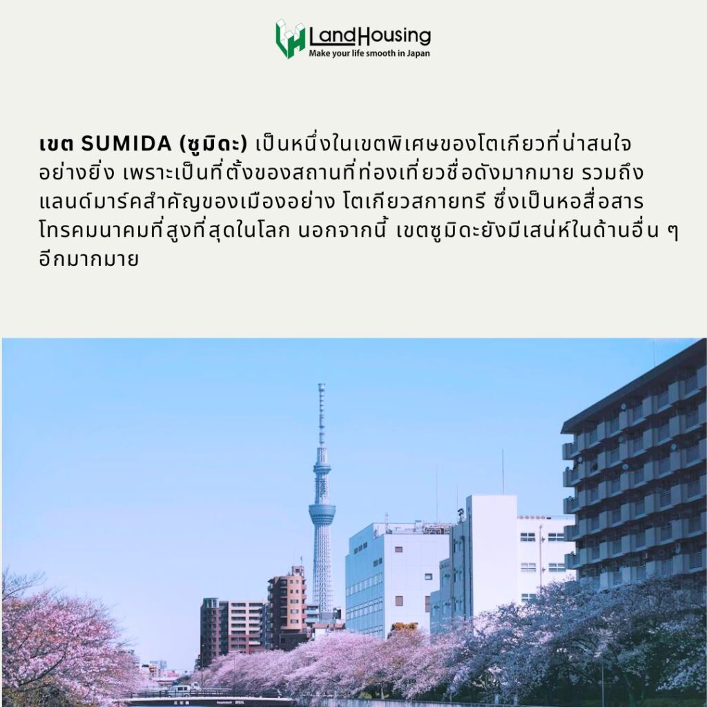 Sumida เขตซูมิดะ เป็นหนึ่งในเขตพิเศษของโตเกียวที่น่าสนใจอย่างยิ่ง เพราะเป็นที่ตั้งของสถานที่ท่องเที่ยวชื่อดังมากมาย รวมถึงแลนด์มาร์คสำคัญของเมืองอย่าง โตเกียวสกายทรี ซึ่งเป็นหอสื่อสารโทรคมนาคมที่สูงที่สุดในโลก นอกจากนี้ เขตซูมิดะยังมีเสน่ห์ในด้านอื่น ๆ อีกมากมาย เช่น