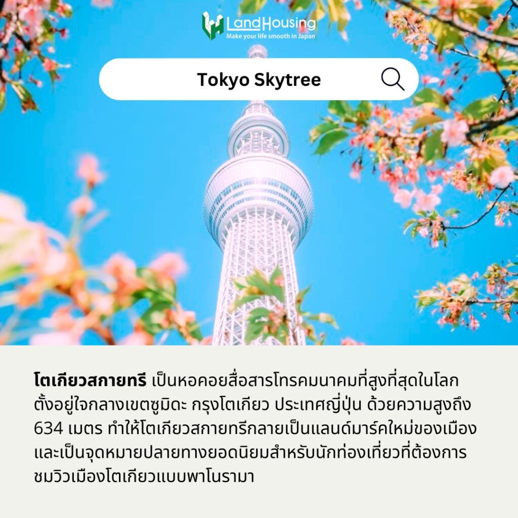 2. โตเกียวสกายทรี: หอสื่อสารโทรคมนาคมที่สูงที่สุดในโลก มองเห็นวิวเมืองโตเกียวได้แบบ 360 องศา มีร้านอาหารและคาเฟ่ให้บริการหลายแห่ง