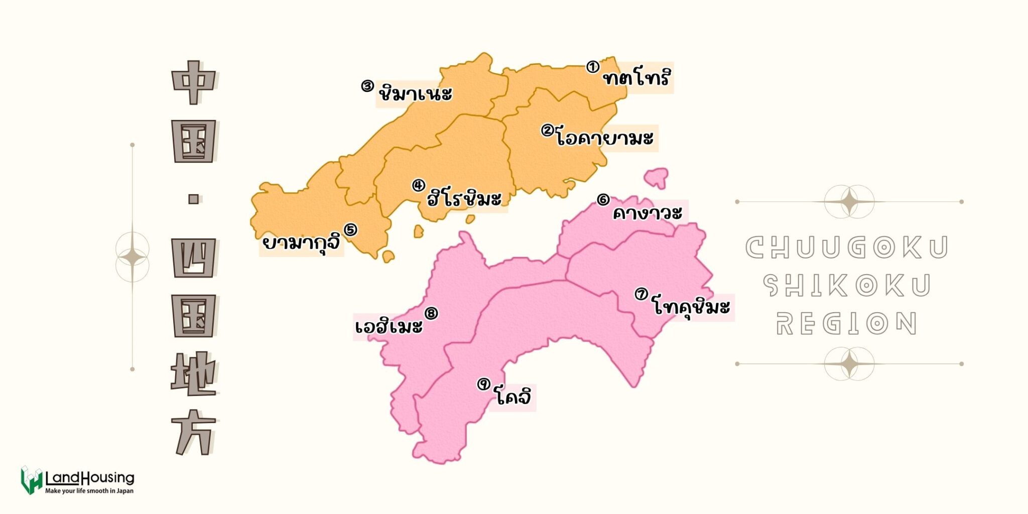 ภูมิภาคจูโคกุ และชิโกกุมีด้วยกันทั้งหมด 9 จังหวัด