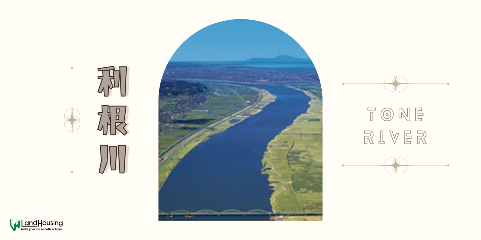利根川 – แม่น้ำโทเนะ เป็นแม่น้ำที่มีความกว้างมากที่สุดในญี่ปุ่น และยังเป็นแม่น้ำสายสำคัญของภูมิภาคคันโต มีความสำคัญต่อชีวิตความเป็นอยู่ของผู้คน ทั้งในด้านการเกษตร การคมนาคม และวัฒนธรรม