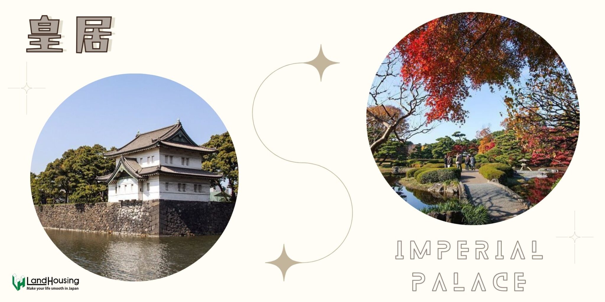 พระราชวังอิมพีเรียล ตั้งอยู่ใจกลางกรุงโตเกียว เป็นที่ประทับหลักของจักรพรรดิแห่งญี่ปุ่น ถือเป็นสัญลักษณ์ของประวัติศาสตร์ และวัฒนธรรมอันยาวนาน พื้นที่แห่งนี้เคยเป็นที่ตั้งของปราสาทเอโดะ ซึ่งเป็นปราสาทที่ใหญ่ที่สุดในโลกในอดีต พระราชวังมีสวนที่สวยงามหลายแห่ง เช่น สวนตะวันออก ซึ่งเปิดให้ประชาชนเข้าชมได้ฟรี สวนแห่งนี้มีทั้งบ่อน้ำ บ่อปลาคาร์ฟ และต้นไม้ใหญ่ให้ร่มเงา