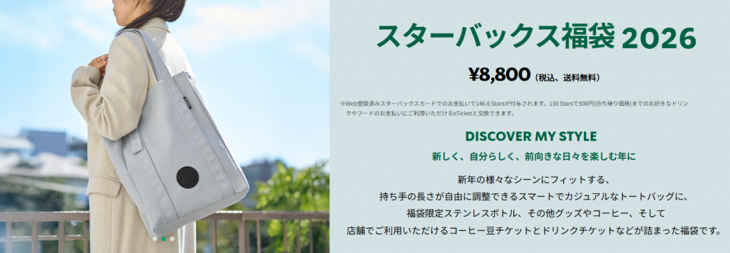 ราคา: 8,800 เยน (รวมภาษี) คลิกเพื่อดูรายละเอียดเพิ่มเติม – ถุงโชคดี Starbucks