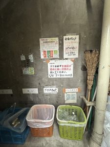 ในที่พักอาศัยหลายแห่งในญี่ปุ่นจะมีการจัดพื้นที่สำหรับทิ้งขยะไว้อย่างชัดเจน ไม่ว่าจะเป็นถังขยะที่ตั้งอยู่ในบริเวณอาคาร หรือห้องทิ้งขยะเฉพาะที่ผู้อยู่อาศัยสามารถนำขยะมาวางได้ด้วยตนเอง ซึ่งกฎและระบบการจัดการจะขึ้นอยู่กับนโยบายของอาคารหรือเขตที่อยู่อาศัย บางพื้นที่เพียงนำขยะไปทิ้งในจุดที่กำหนดก็เพียงพอ แต่บางพื้นที่อาจกำหนดให้ต้องประสานกับหน่วยงานท้องถิ่นในกรณีที่ต้องนำขยะประเภทพิเศษ เช่น ขยะขนาดใหญ่หรือขยะต้องกำจัดเป็นการเฉพาะไปยังจุดรับทิ้งเฉพาะทาง