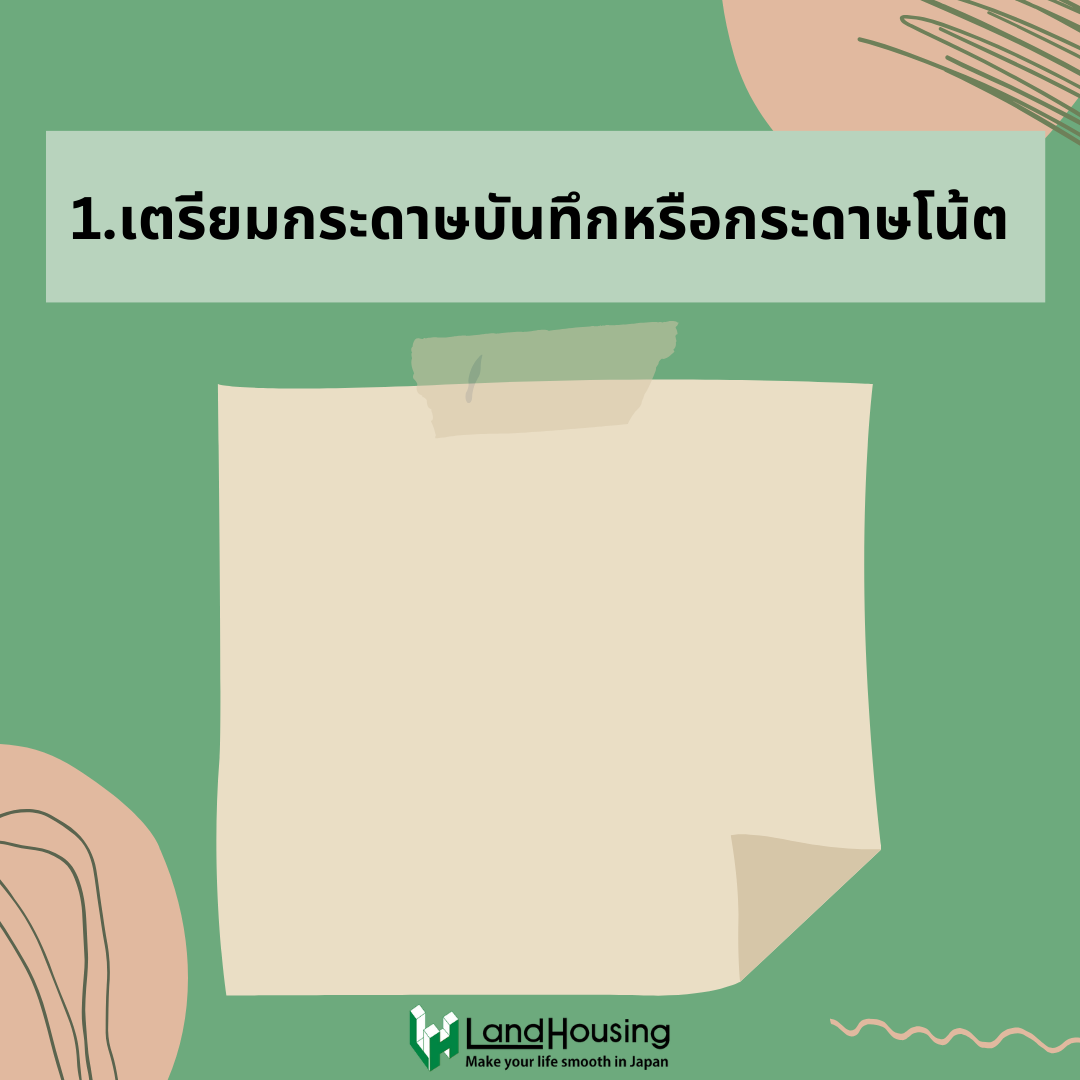 1.เตรียมกระดาษบันทึกหรือกระดาษโน้ต
