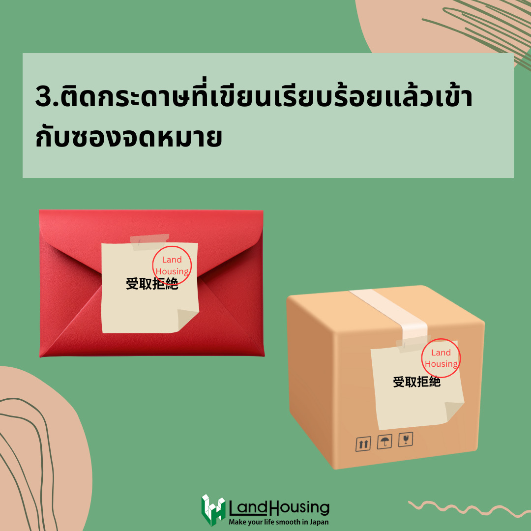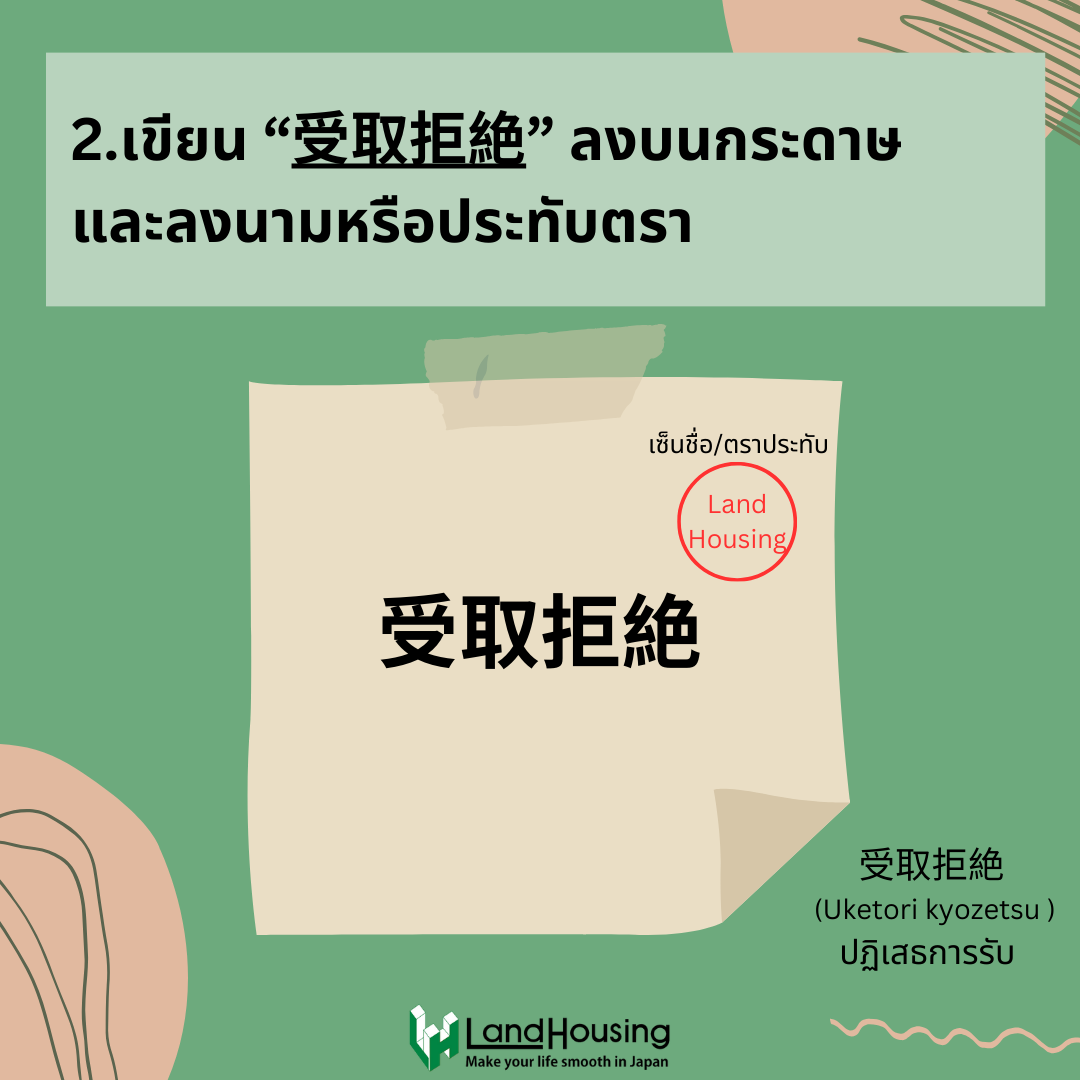 2.เขียนคำว่า “受取拒絶” ลงบนกระดาษและลงนามหรือประทับตรา (สามารถเขียนลงที่ซองได้เช่นเดียวกัน)
