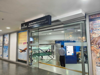 4. เมื่อลงบันไดเลื่อนมา 2 ชั้นจะเจอชั้น G บริเวณหน้าทางเข้าอาคารติดกับ CITIBANK ให้เลี้ยวซ้ายลงบันไดเพื่อเดินไปยังโซนพลาซ่า