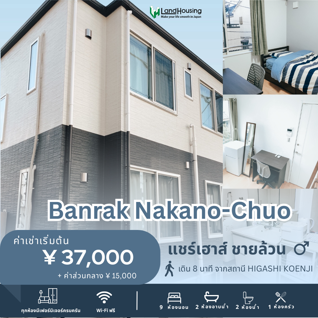 หอพักที่ถูกใจหนุ่ม ๆ  แชร์เฮาส์ ชายล้วน ใกล้ Shinjuku บ้านรัก นากาโนะ ชูโอ (バンラック中央)