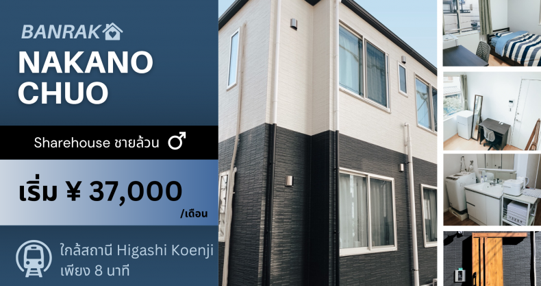 New! บ้านรัก Nakano Chuo แชร์เฮาส์ชายล้วน ใกล้ Shinjuku 8 นาที
