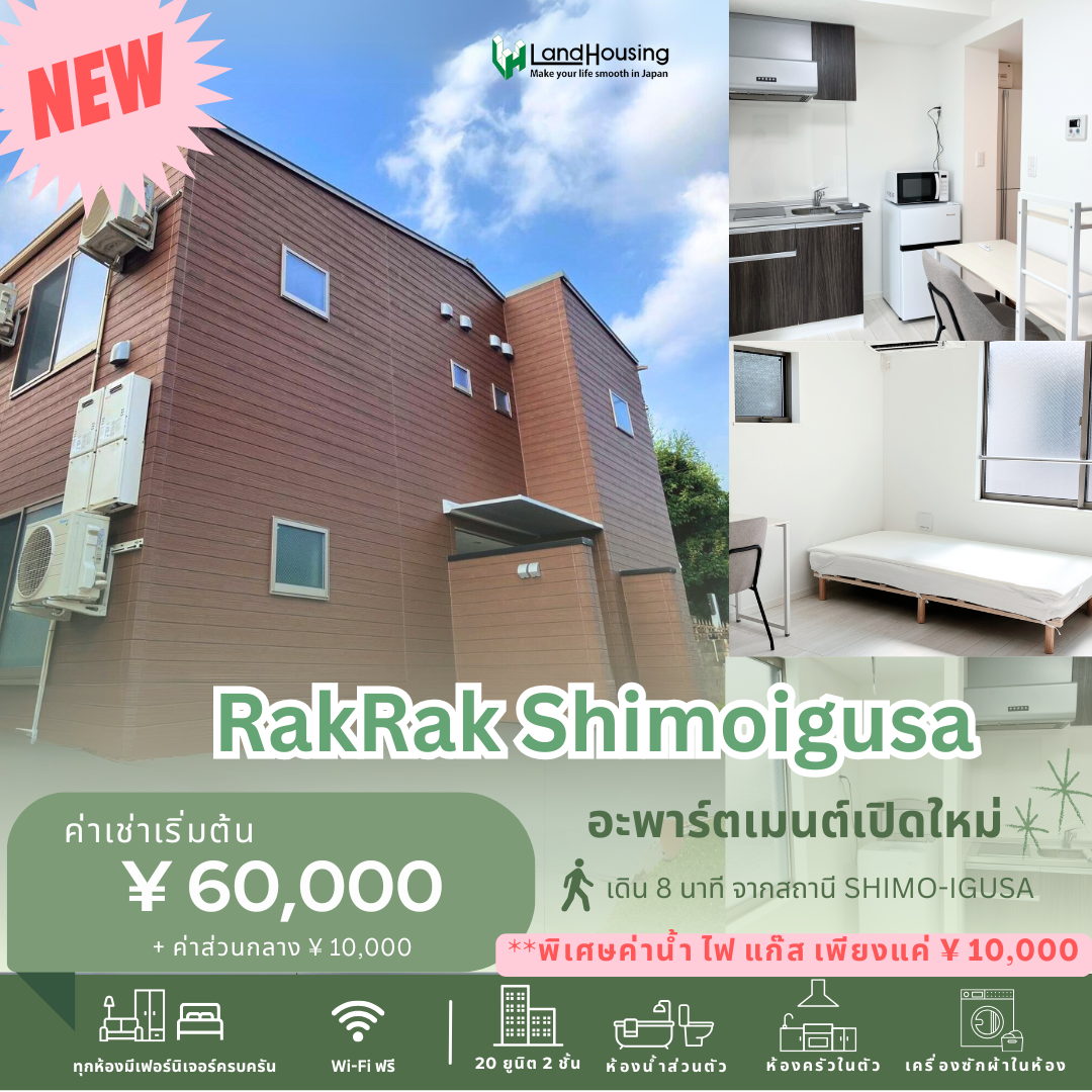Apartment เปิดใหม่💥🏙️ ” RakRak Shimoigusa รักรัก ชิโมอิกุสะ ” ตกแต่งครบพร้อมอยู่ พร้อมให้เช่าแล้ววันนี้ รายล้อมด้วยร้านค้า 🚶🚶‍♀️เดินจากสถานี Shimo-Igusa Station, Seibu Shinjuk Line เพียง 8 นาที 🚅ไปสถานี Takadanobaba ได้ภายใน 13 นาที/ สถานี Seibu-Shinjuku ได้ภายใน 17 นาที ✨ค่าเช่าเริ่มต้นเพียง 60,000 เยน + ค่าส่วนกลาง 10,000 เยน/เดือน 💚ส่วนลดค่าน้ำ ไฟฟ้า แก๊ส 3,000 เยน จากราคาเฉลี่ยปกติ 13,000 เยนรวม *เหมาจ่ายเพียงแค่ 10,000 เยน เท่านั้น!! #sharehouse ญี่ปุ่น #โตเกียว #คนไทยในญี่ปุ่น🇹🇭🇯🇵タイ livinginjapan #rentroom #ที่พักญี่ปุ่น #lifeinjapan #japan