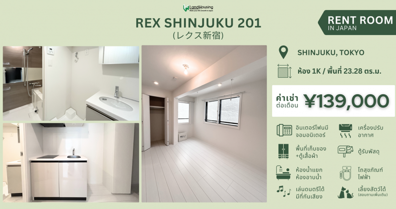 อพาร์ทเมนต์ให้เช่าใกล้ชินจุกุ ✨Rex Shinjuku ห้อง 201✨
