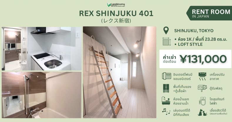 แมนชั่น 1R ให้เช่าใกล้ชินจุกุ ✨Rex Shinjuku ห้อง 401✨