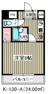 ห้องแบบ 1K ขนาด 24 ตารางเมตร / มีที่จอดจักรยาน